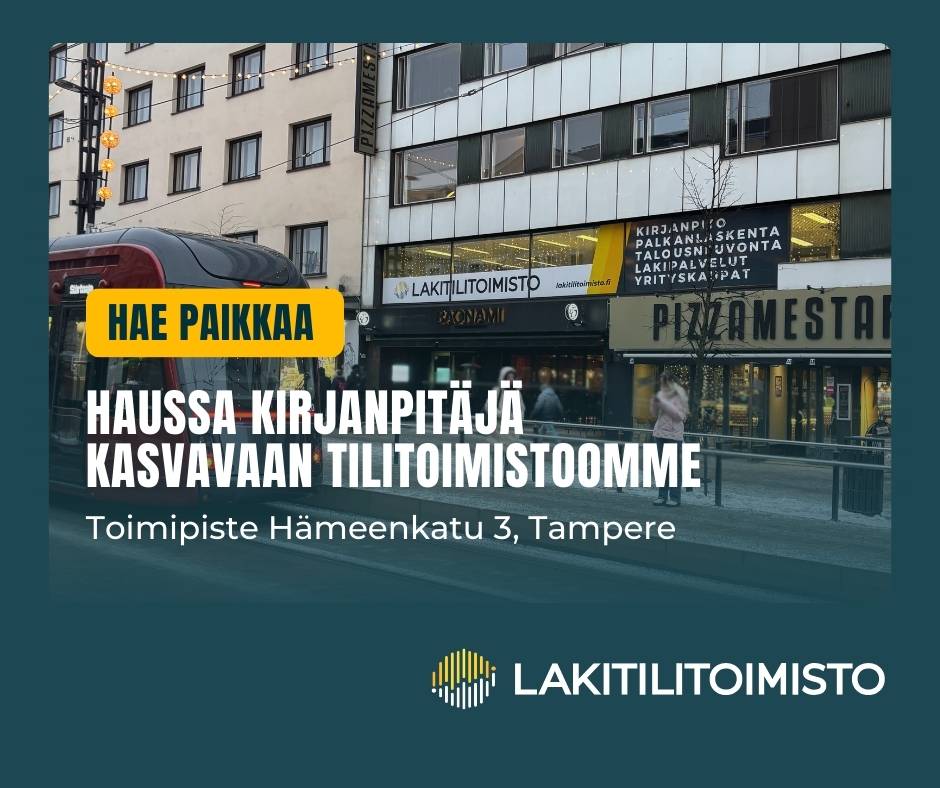 Kasvava tilitoimistomme avaa avoimen hakemuksen kirjanpitäjille Tampereen toimipisteelle.